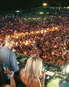 A Spanish electronic music brand with a stage design dominated by a green forest theme, aiming to host events featuring renowned artists in special and unique locations.
